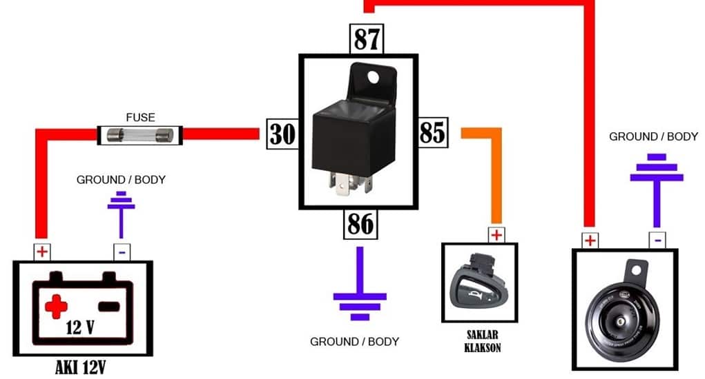Klakson mobil atau motor ternyata juga menggunakan relay, dan tidak berdampak pada penggunaan aki. Di sini relay digunakan untuk mencegah timbulnya kerusakan pada kendaraan.